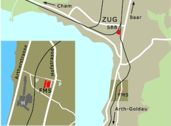 Die FMS Zug befindet sich in bevorzugter Lage.