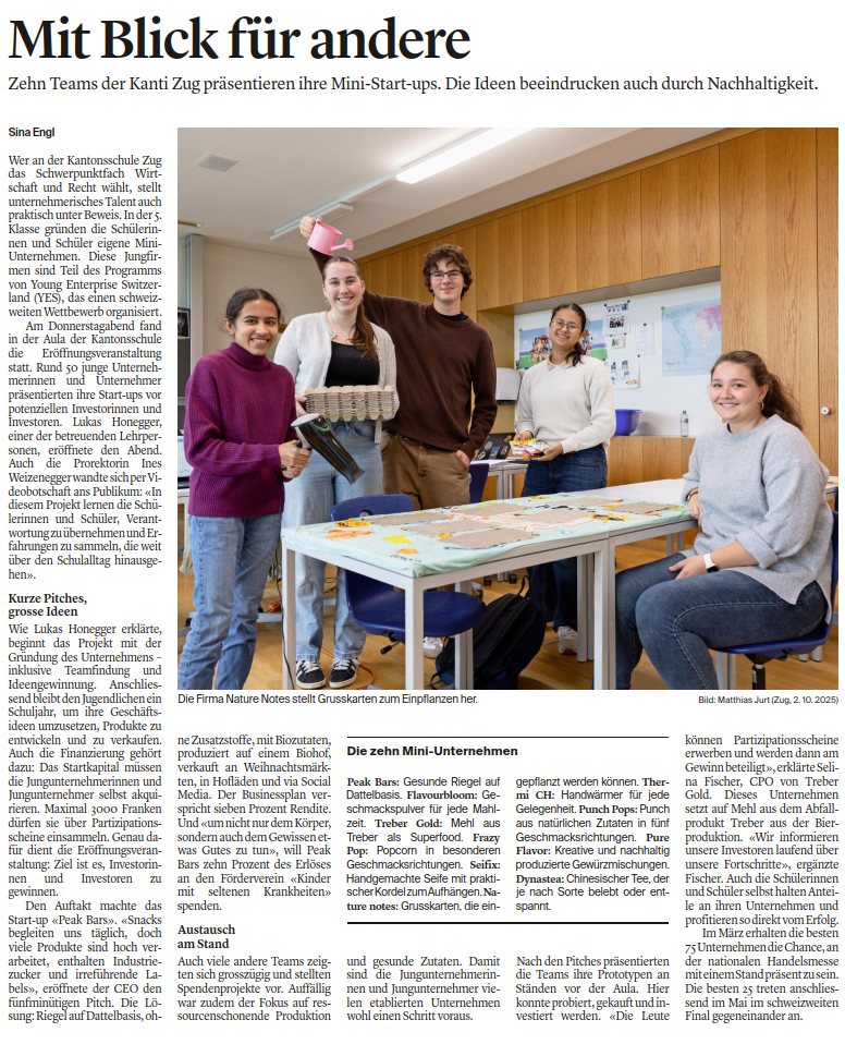 Zehn Teams der Kanti Zug präsentieren ihre Mini-Start-ups