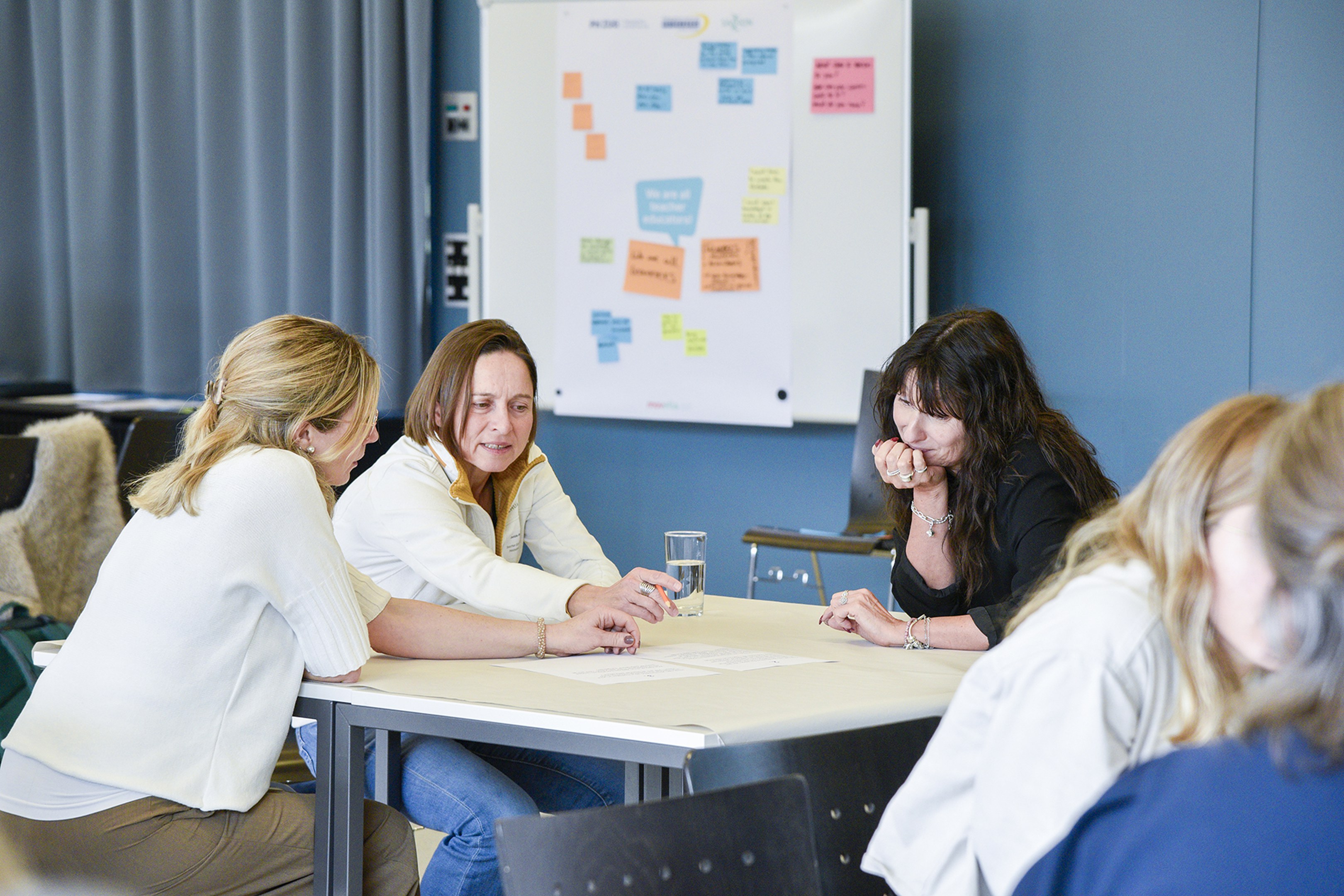 Am ersten Tag des dreitägigen Projekttreffens hospitierten Praxislehrpersonen und Hochschulmitarbeitende aus den Niederlanden und Deutschland bei Tandempartnerinnen in der Schweiz. Sie erhielten Einblicke in die Begleitung von Studierenden und der Förderung von Professionalisierungsprozessen. Am Nachmittag öffneten die Mentoratspersonen der PH Zug die Türen für die Projektteilnehmenden. Die Besucherinnen erfuhren, wie die Studierenden im Mentorat zur Reflexion der Praxiserfahrungen angeregt werden. Es entstand ein intensiver Austausch.