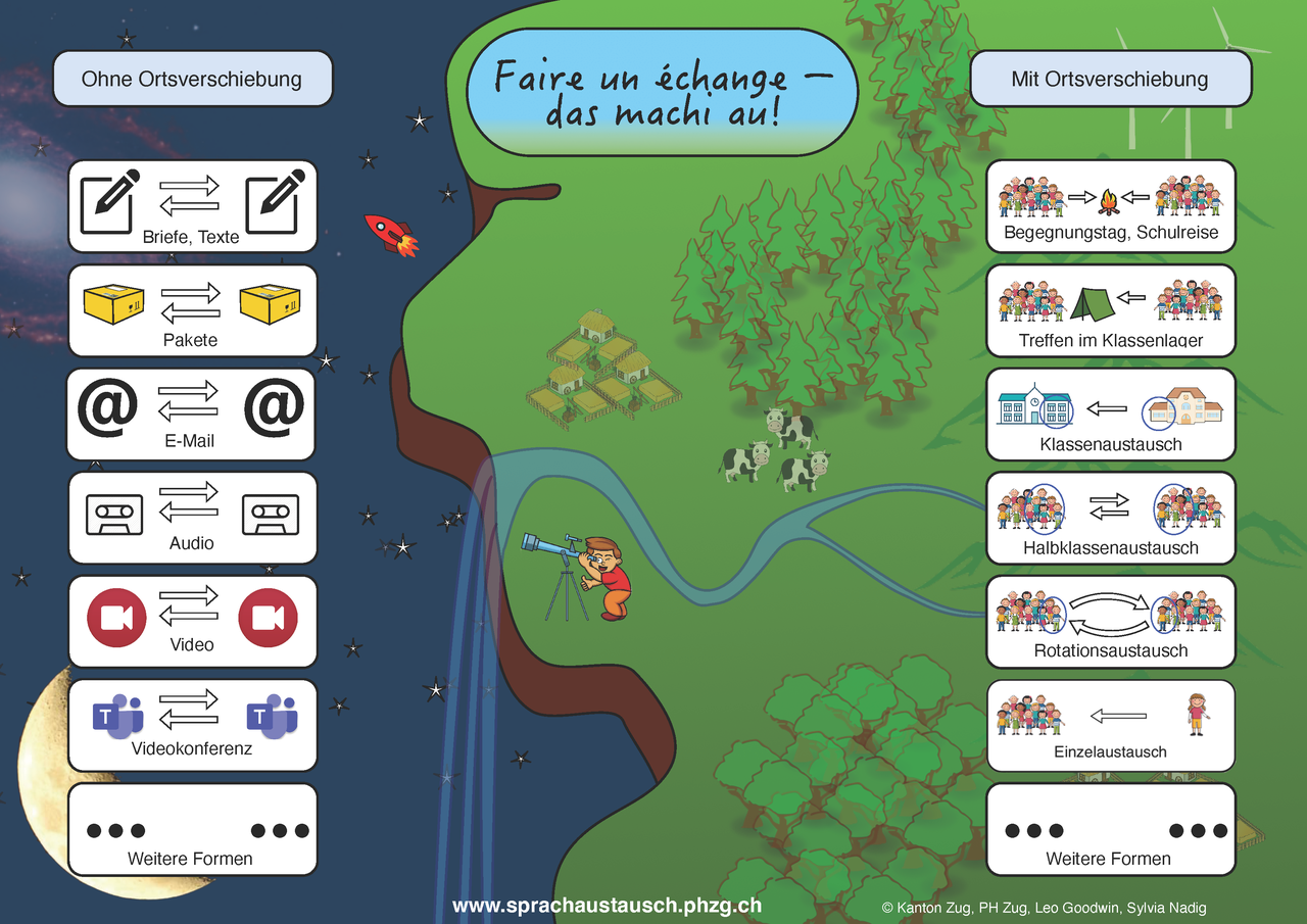 Diese Seite gibt eine Übersicht über verschiedene Austauschformate ohne und mit Ortsverschiebung und führt zu konkreten Praxisbeispielen zu jeder dieser Austauschforaten.