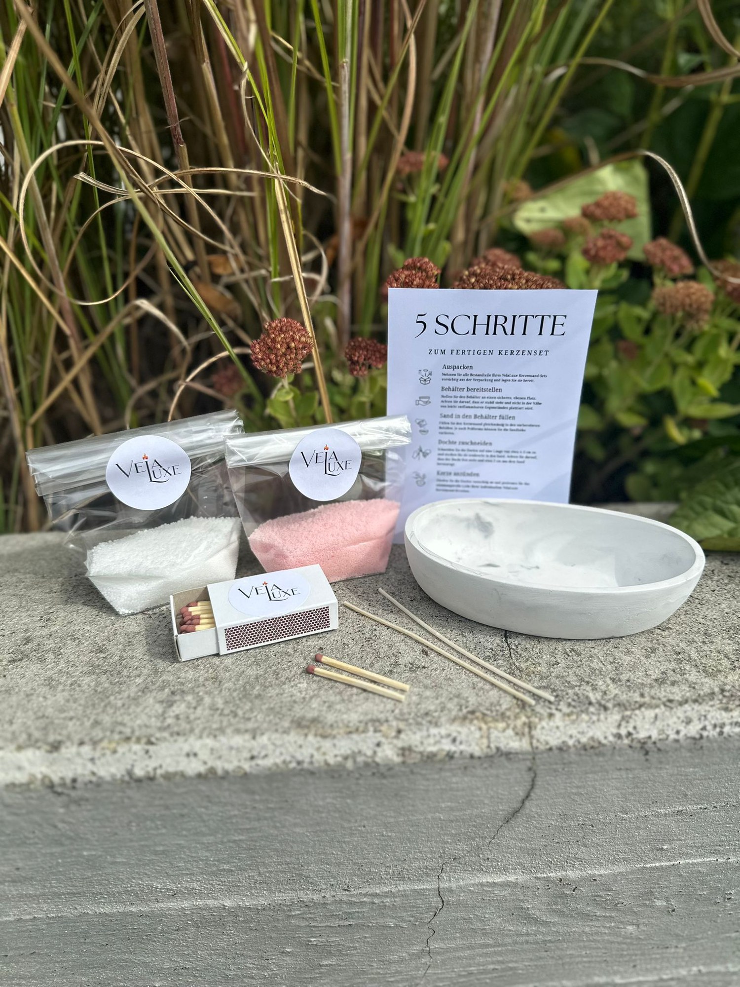 VelaLuxe bietet eine langlebige und umweltfreundliche Alternative zu einfachen Kerzen, die oft einmalig genutzt und weggeworfen werden. Unser Starter-Set mit selbst hergestellten Modellgipsbehältern in Weiss oder Marmor, die es in allen Grössen gibt, nachfüllbarem Kerzensand in verschiedenen Farben, Dochten und exklusiven Zündhölzern macht das Produkt besonders.