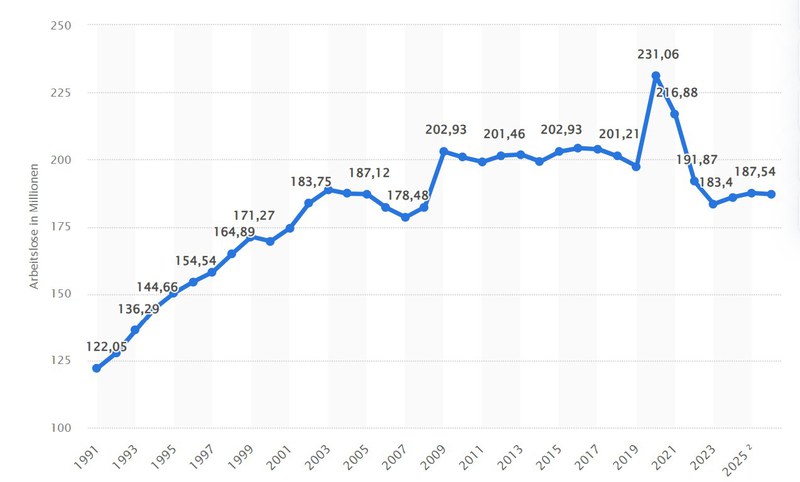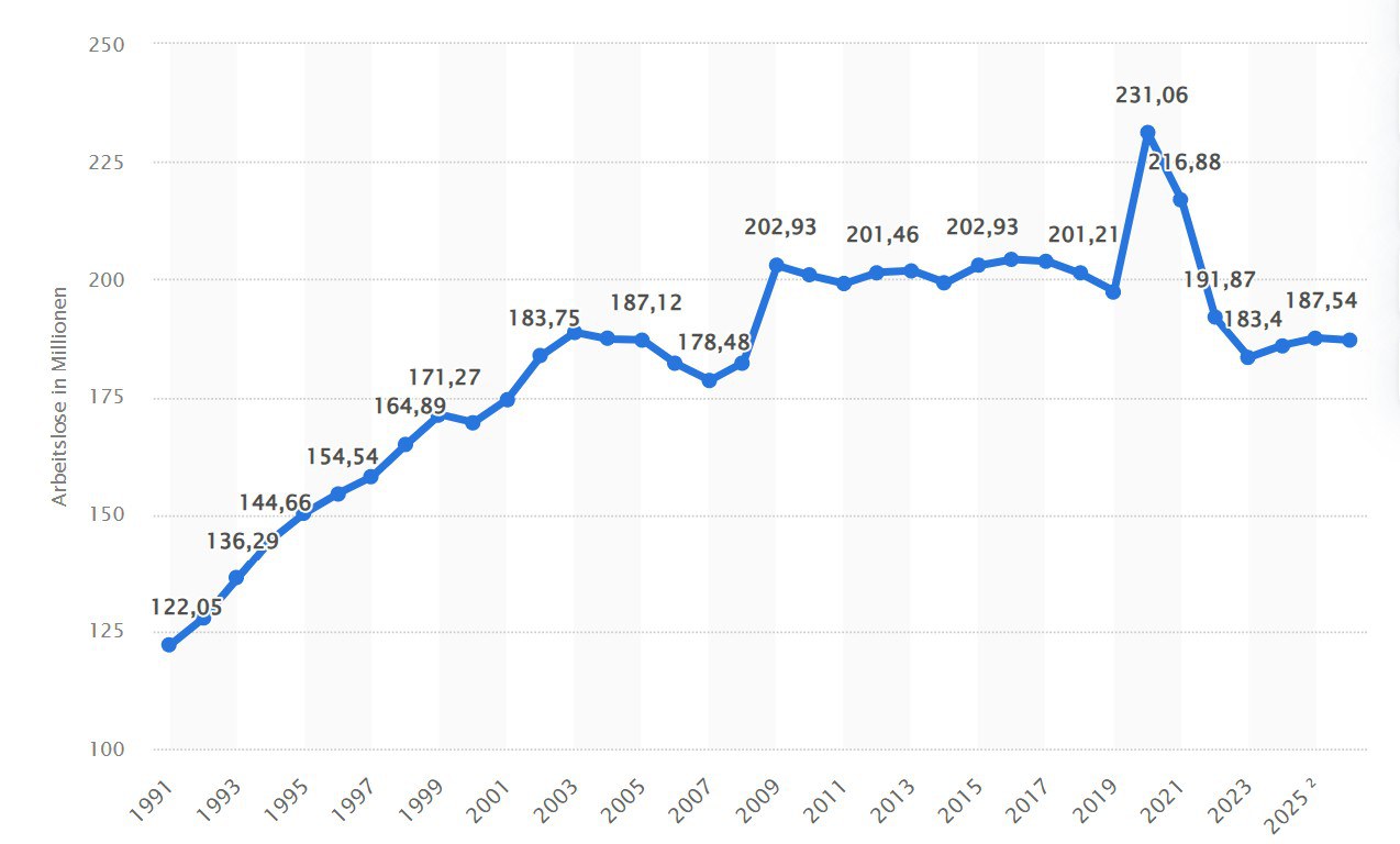(4) Arbeitslosenzahl weltweit bis 2025| Statista