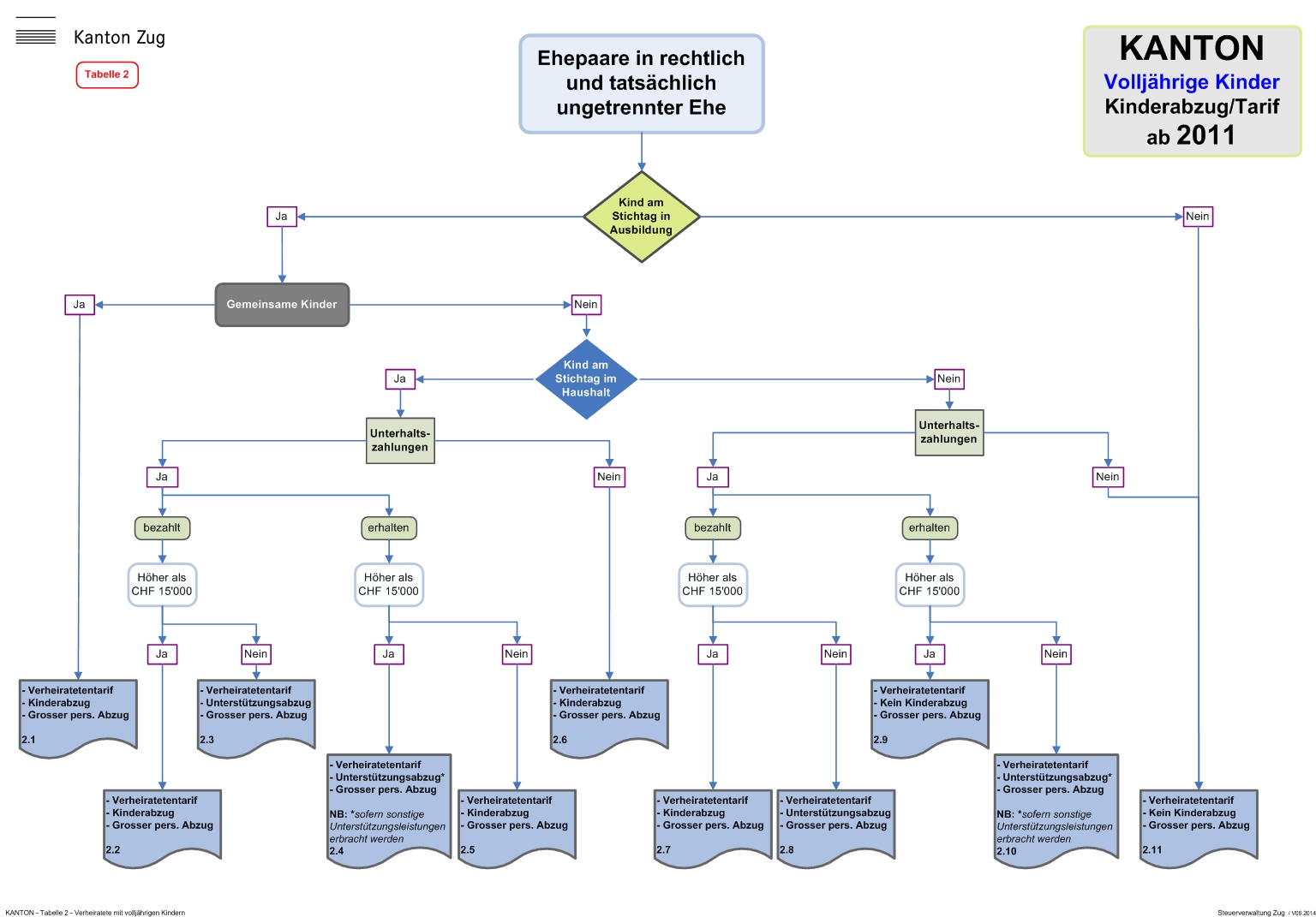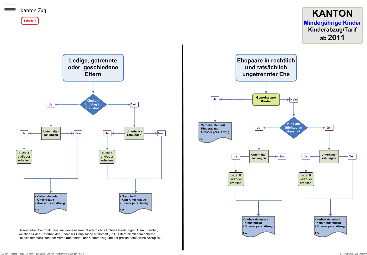 Im Bereich Kantons- und Gemeindesteuern sind die nachfolgend aufgeführten Tabellen bzw. Familienkonstellationen zu berücksichtigen: