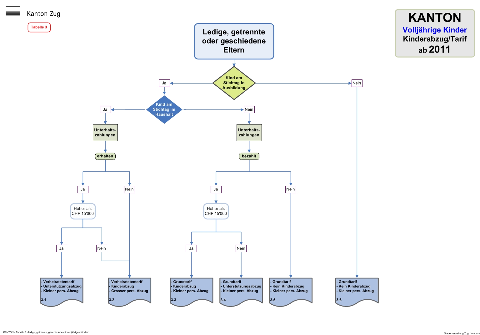 Tabellenübersicht: Kinderabzug und anwendbarer Tarif Kantons- und Gemeindesteuern (ab Steuerperiode 2011)