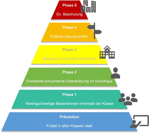 Das Konzept verbindet wissenschaftlich fundierte Grundlagen mit praxiserprobten Abläufen. Präventive Massnahmen, ein fünfstufiges Phasenmodell sowie die Einrichtung eines pädagogischen Supports an den Standorten Dorf und See bilden die zentralen Elemente. Dadurch wird gewährleistet, dass Schülerinnen und Schüler möglichst gemeindenah unterstützt werden können und stabile Lernumfelder entstehen.