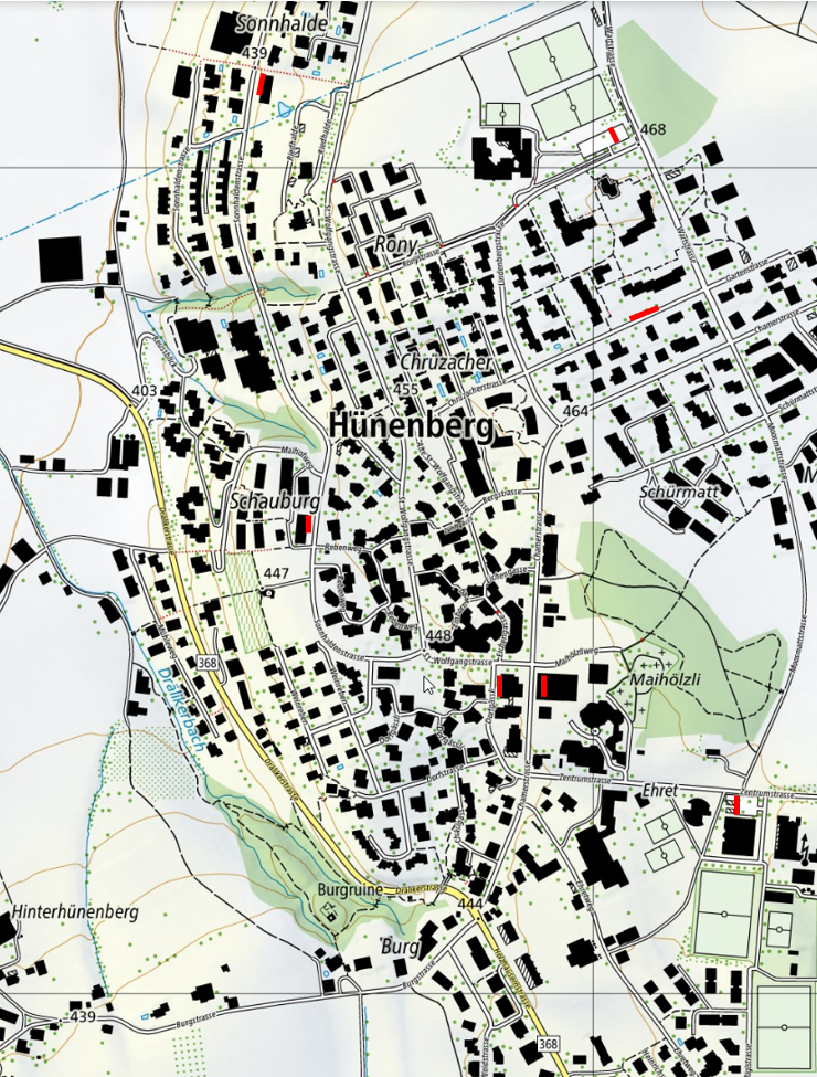 Folgende Standorte an öffentlichen Ladestationen für Elektroautos stehen in Hünenberg zur Verfügung:
