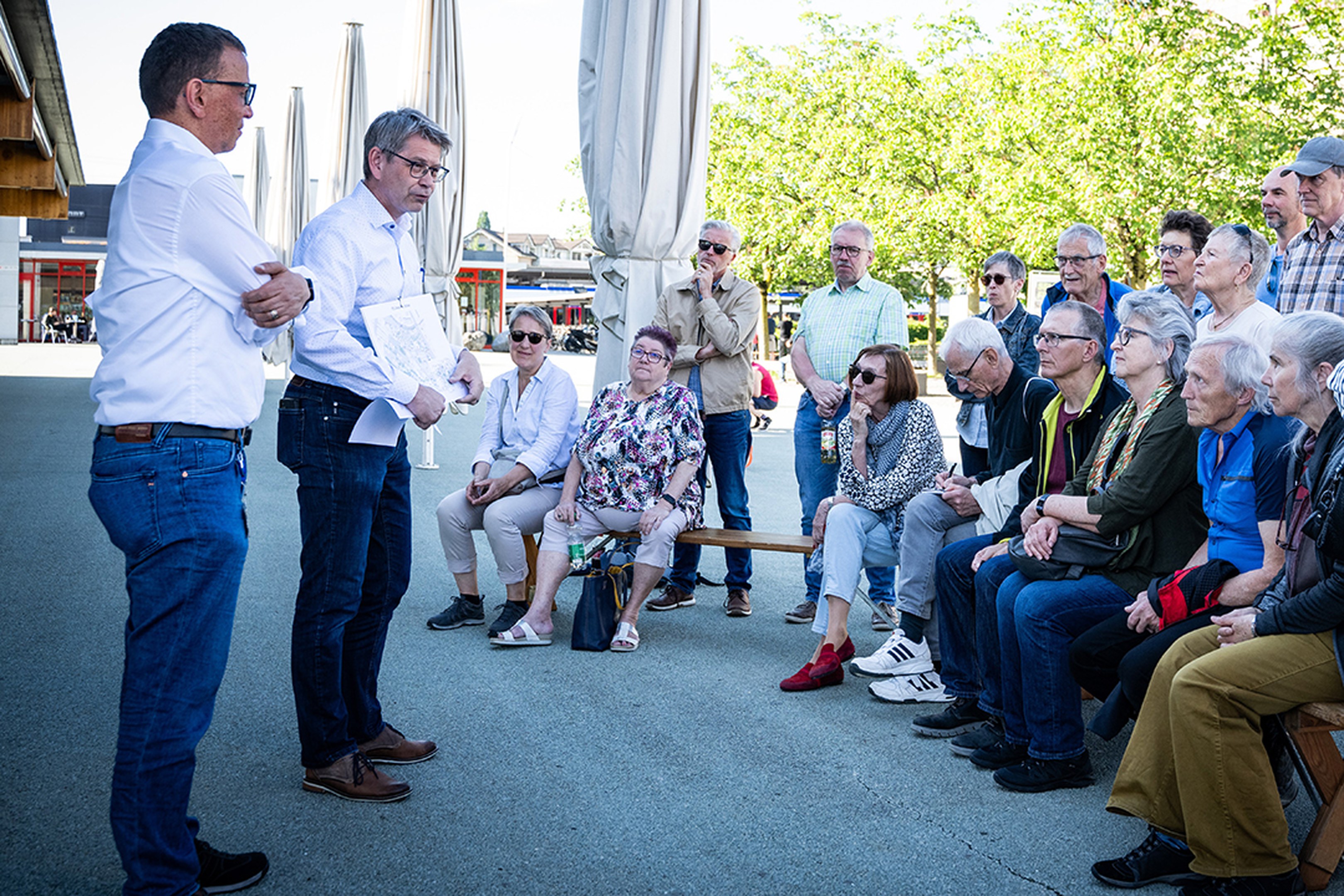 Am Dialoganlass vom 26.5.2024 stand die Ortsplanung nicht primär im Vordergrund. Dies, weil die Gemeinde im Rahmen der Zentrumsgestaltung Dorfmatt, Bahnhof Süd, Kantonsschule und Sportpark die raumplanerischen Grundlagen bereits definiert und mit der Umsetzung begonnen hat. An den Themenposten «Zentrum Dorfmatt», «Bahnhof Süd» und «Sportpark» informierte der Gemeinderat und das Team der Stabstelle Entwicklung deshalb über die aktuellen Projektentwicklungen, insbesondere über den Stand der Wettbewerbe Dorfmatt und Sportpark, Zwischennutzungen und Provisorien sowie Synergien und Etappensiege mit dem Kanton und der SBB. Am Themenposten «Kirchenhügel» wurde den Teilnehmenden das Zielbild für das Fokusgebiet Kirchenhügel im Detail vorgestellt. Die Dialogreihe erweist sich als gutes Format, um Anliegen und Rückmeldungen aus der Bevölkerung aufzunehmen und ihren Puls zu fühlen.