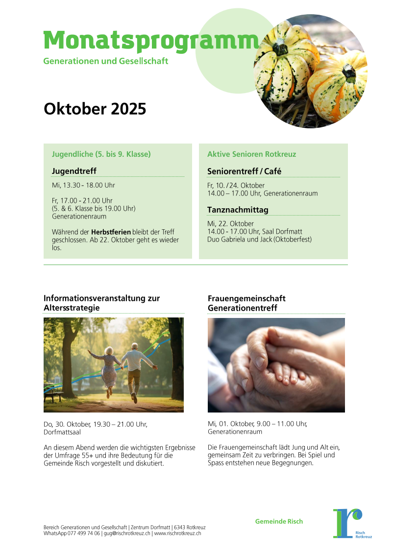 Während den Herbstferien bleibt der Treff geschlossen. Ab 22. Oktober 2025 geht es