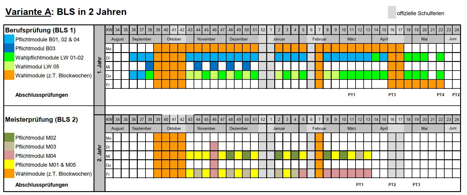 Die gesamte BLS 1 ist modular aufgebaut und der Stundenplan ist daher von Ihrer Modulauswahl und der Intensität der Modulbesuche abhängig. Daher erhalten Sie vor dem Start Zugang zu Ihrem persönlichen individualisierten Stundenplan (online).