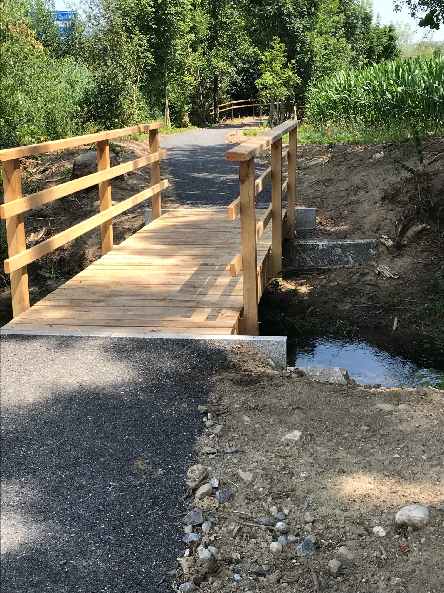 Bis zur Umsetzung führte der Lorzen-Wanderweg in der Agglomeration Zug über ein Trottoir entlang einer stark befahrenen Kantonsstrasse. Dank des neuen Weges können Wanderinnen und Wanderer heute sicher, ruhig und naturnah unterwegs sein – unter alten Bäumen, vorbei an Weihern und entlang der idyllischen Lorzenlandschaft.